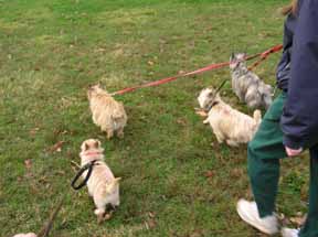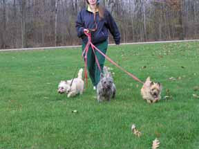 The foster herd taking a walk in the park with Foster Mom Bonnie